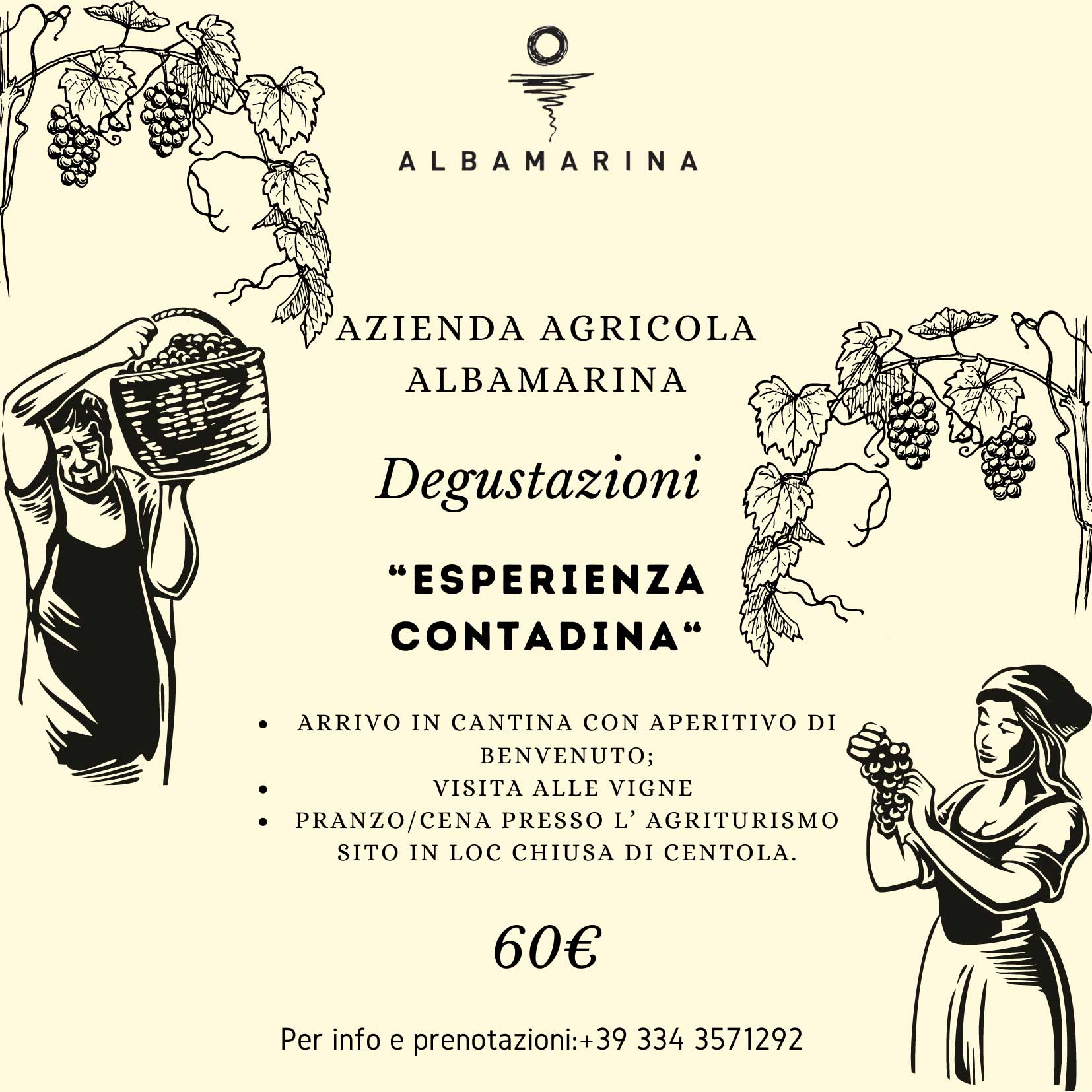 • ARRIVO IN CANTINA CON APERITIVO DI BENVENUTO;• VISITA ALLE VIGNE • PRANZO/CENA PRESSO L'AGRITURISMO SITO IN LOC CHIUSA DI CENTOLA